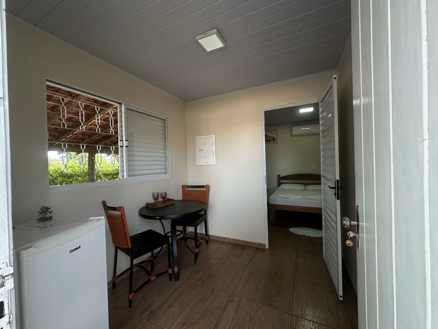 Este charmoso chalé combina conforto, privacidade e o encanto da natureza, sendo perfeito para quem busca momentos de tranquilidade e aconchego. A acomodação possui entrada privativa, ar-condicionado, sala de estar aconchegante, quarto separado e banheiro espaçoso com box amplo e kit de amenities completos. A varanda privativa é um convite ao relaxamento, equipada com churrasqueira, mesa com cadeiras e uma rede para descanso, ideal para apreciar a vista do jardim e o clima agradável de Analândia e o morro do Cuscuzeiro. O chalé conta ainda com frigobar e TV de tela plana a cabo, proporcionando praticidade e entretenimento durante toda a estadia. |